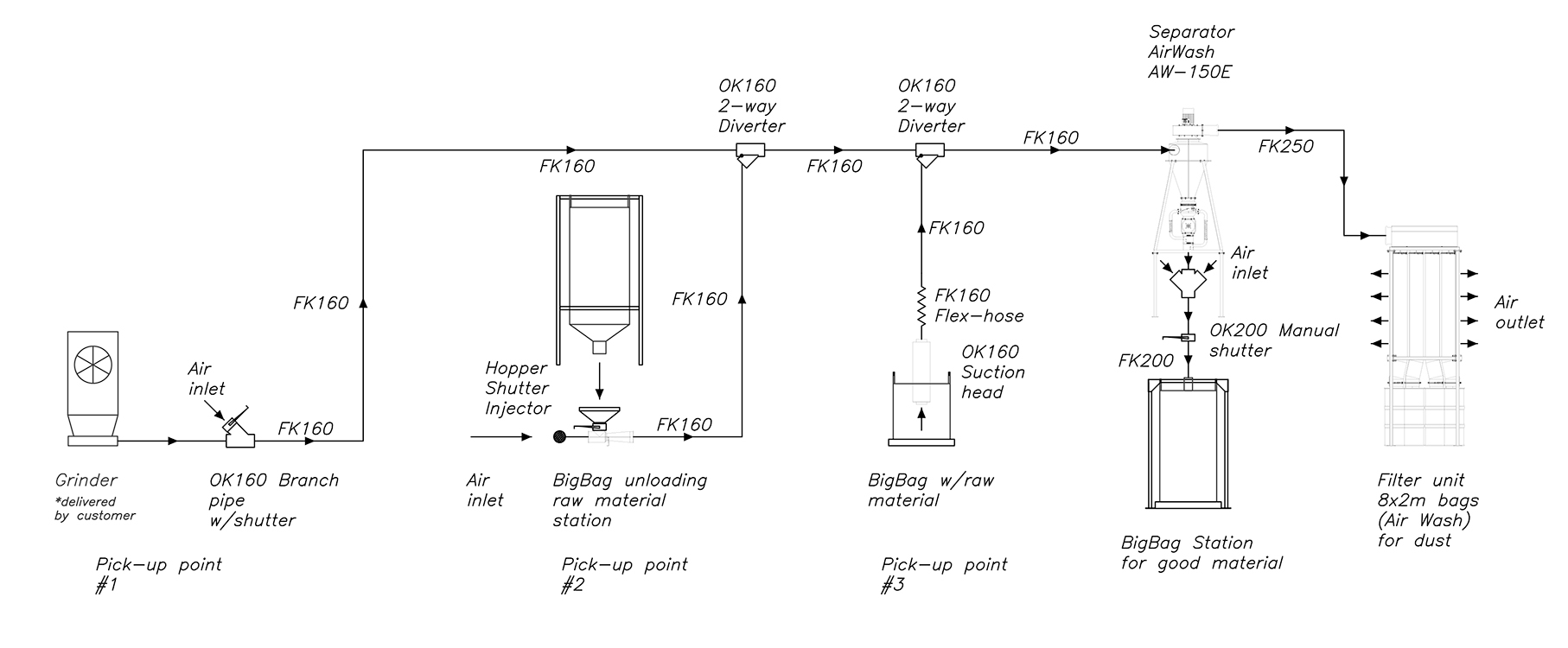 Kongskilde introduced an effective cleaning solution, accommodating regrind from various sources—directly from the mill, mixer discharge, or the suction head discharge from a big bag or octabin.